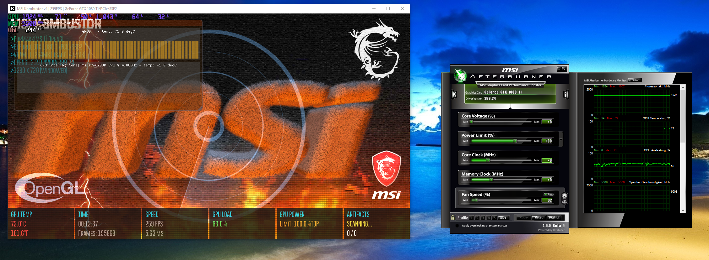 Ich komme auch nicht in das Power Limit zumindest zeigt der Afterburner keines an. Wenn ich denn Regler von Power Target auf 120% stelle ändert sich nichts daher weiß ich nicht ob der nun geht oder nicht. So wohl mit 100% als auch eben 120% habe ich immer konstant 1924Mhz mit Standard GPU Takt. Temperatur ist mit dem OC Bios immer um die 71 Grad was echt mega ist. Mit dem Stock Bios war ich immer unter 70 Grad von daher der Kühler ist echt super.