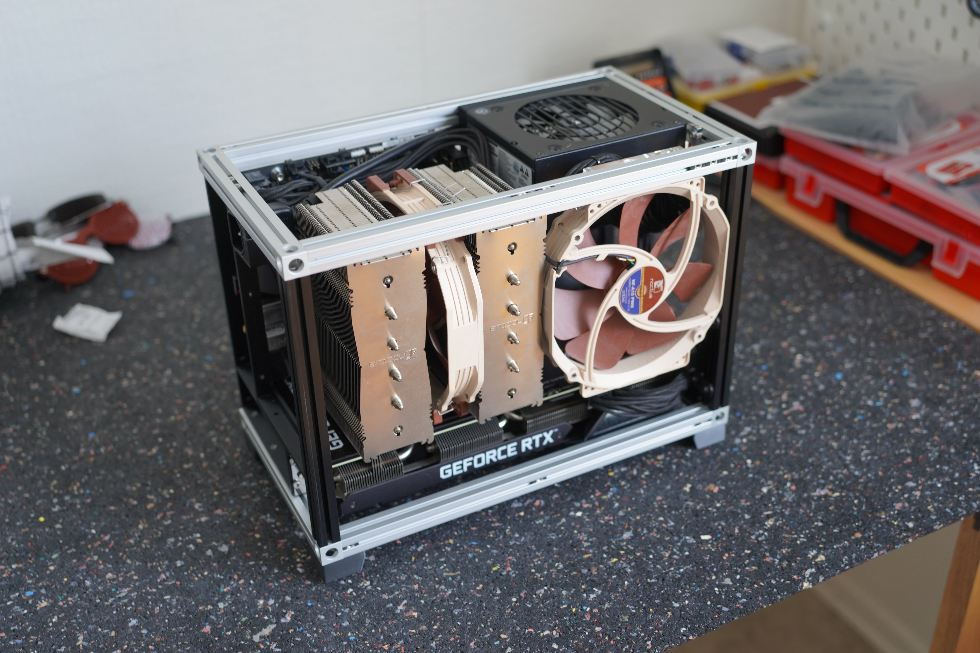 Also ich habe vor kurzen meinen Itx Rechner geupgradet mit einem ryzen 3900x und in dem zuge auch einen Noctua NH-D15 installiert. Der 3900x sitzt auf einem Asus Strix b450i gaming und alle komponenten sind in einem custom Gehäuse untergebracht das ich gebaut habe und welches aktuell noch ohne Äußere Panele läuft.