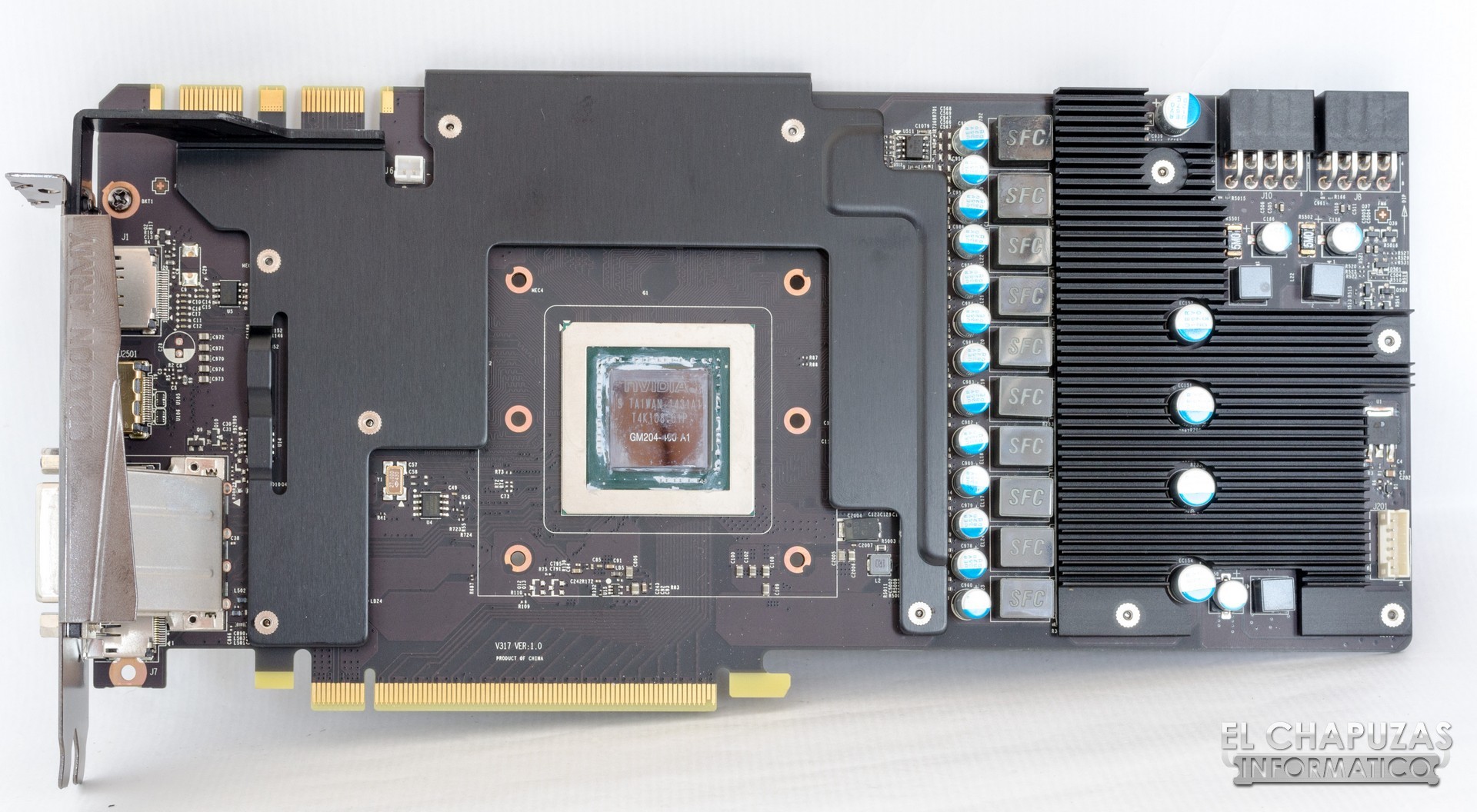 generell find ich das PCB sehr mager. Memory wie gesagt nackt und der Kühler aud den Spawa-Mosfets sieht jetzt auch nicht gerade wuchtig aus. Aber Hauptsache nach aussen mächtig aussehen mit Backplate. Ich hätte kein gutes gefühl, die Karte bis ans Limit zu übertakten oder gar Spannung zuzugeben. Auf jeden Fall nicht 24/7. Wäre für mich ein Grund, die Karte nicht zu kaufen. Wenn man sie hat, ist sie auf jeden fall ein guter Kandidat für einen Umbau mit dem Morpheus oder dem Peter.