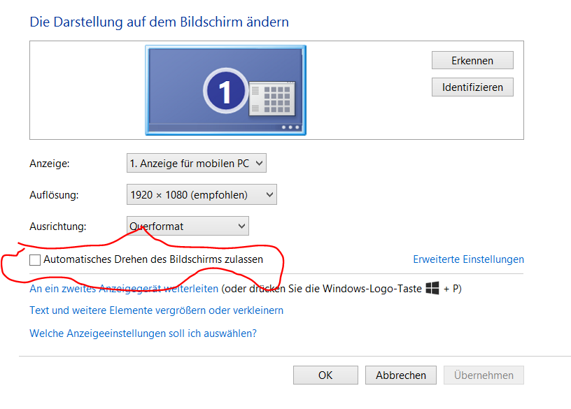 leider habe ich ihrgendwie geschafft die automatische Bildschirm drehung auszuschalten, leider finde ich die Einstellung nicht, es soll unter den Helligkeits Einstellungen sein, finde es aber nicht ;(;(