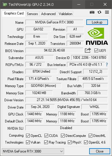 Asus oder Nvidia werden das bestimmt merken, dass da der Zero-Modus nicht funktioniert. Wie laut ist die 3080 (bin so neidisch auf Dich) im Windows-Betrieb mit den 1000 U/min drehenden Lüftern?
