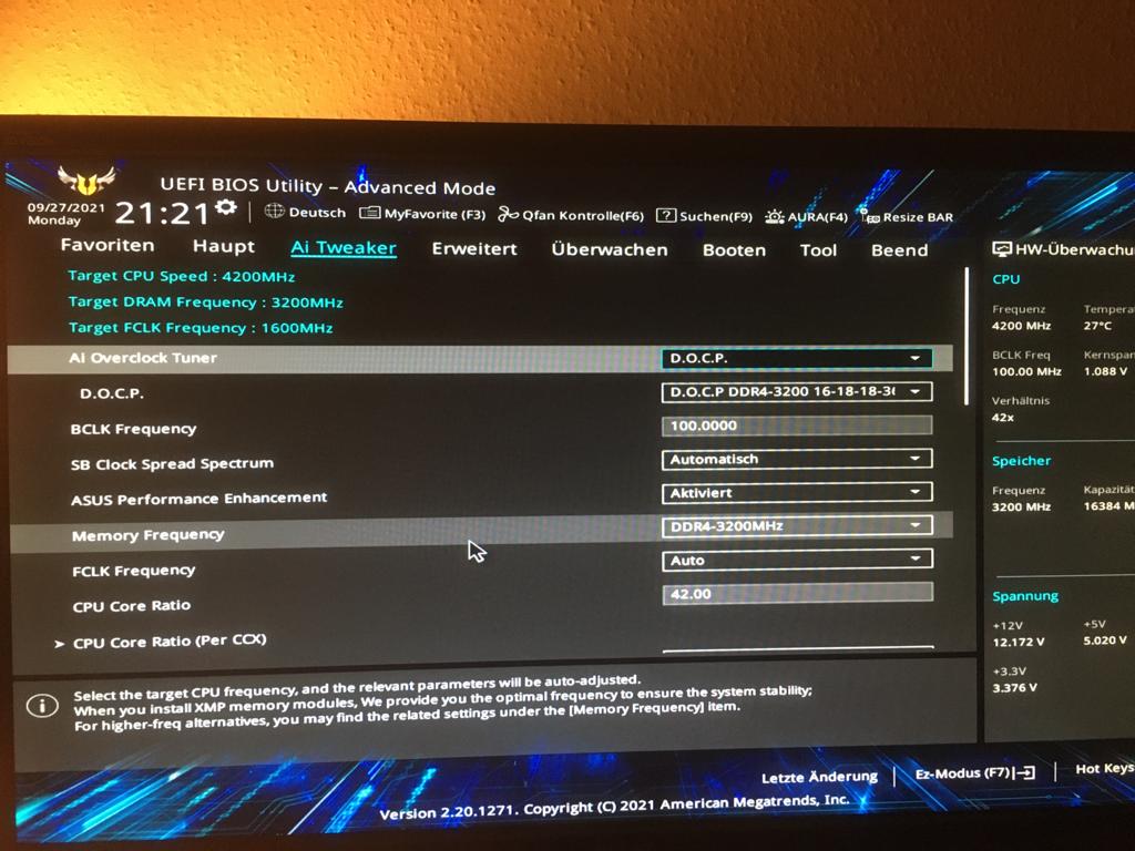Mainboard: AUS TUF GAMING B550-PLUS (aktuelles BIOS Stand bis heute: Version 2423)