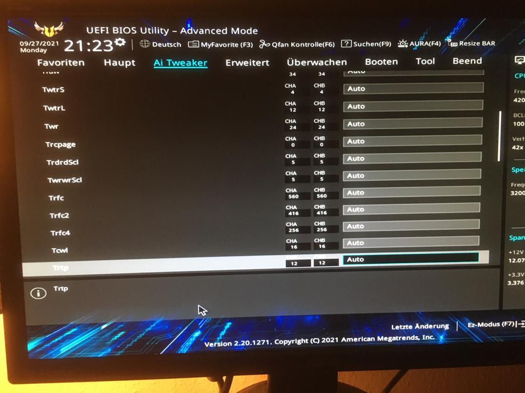 den tREFI wert von 65535 konnte ich nicht im BIOS einpflegen aber ich denke auch, dass ich mit dem eigentlichen BIOS nicht zurecht komme...