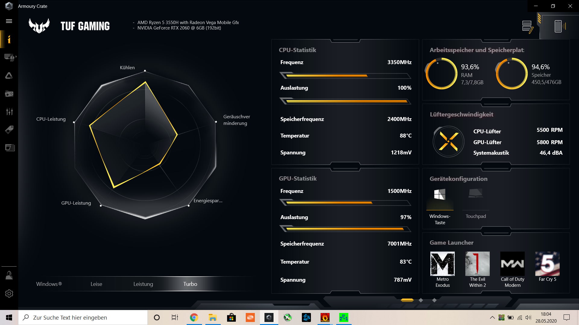 Vor dem Bios Update waren es ca. 98% GPU Auslastung und CPU bei ca. 43%.