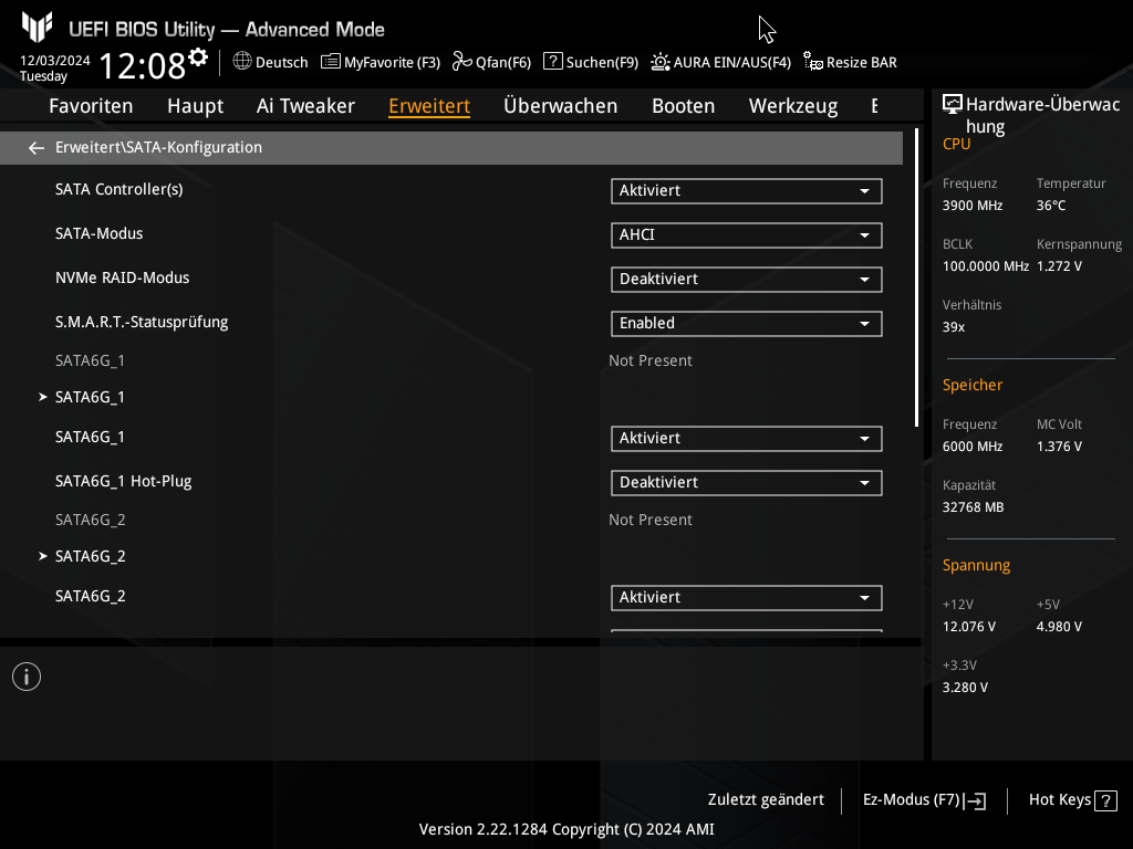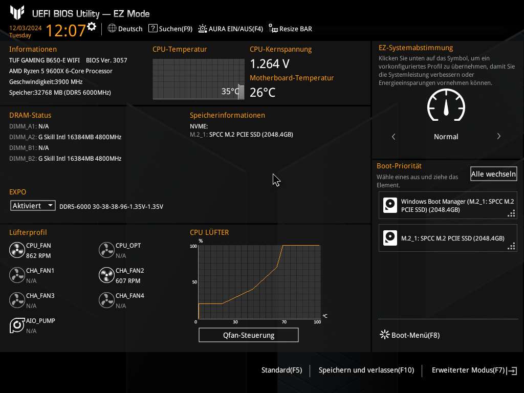 Wie der Titel schon sagt habe ich ein ASUS TUF Gaming B650-E Wifi Mainboard. Ich habe aufgrund des verbauten 9600x Prozessors das BIOS schon auf die aktuellste Version aktualisiert.