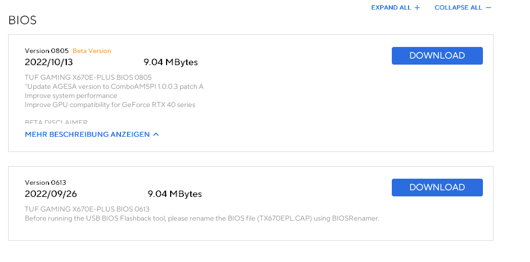 Speicher mehrfach ein und ausgebaut (auch feste reingedrückt), gemäß Anleitung für die optimale Belegung. Auch lediglich einen Speicher probiert. Stromanschlüsse überprüft bzw. neu eingesteckt. Grafikkarte ein und ausgebaut. Anpressdruck der Wasserkühlung gelockert. Cmos Clear. Mainboard Batterie aus und wieder eingesetzt. Bios Update per Bio Flashback probiert --> Exakt gemäß Anleitung. Leider blinkt die LED immer nur kurz und dann dauerhaft. Scheinbar startet das Update nicht.