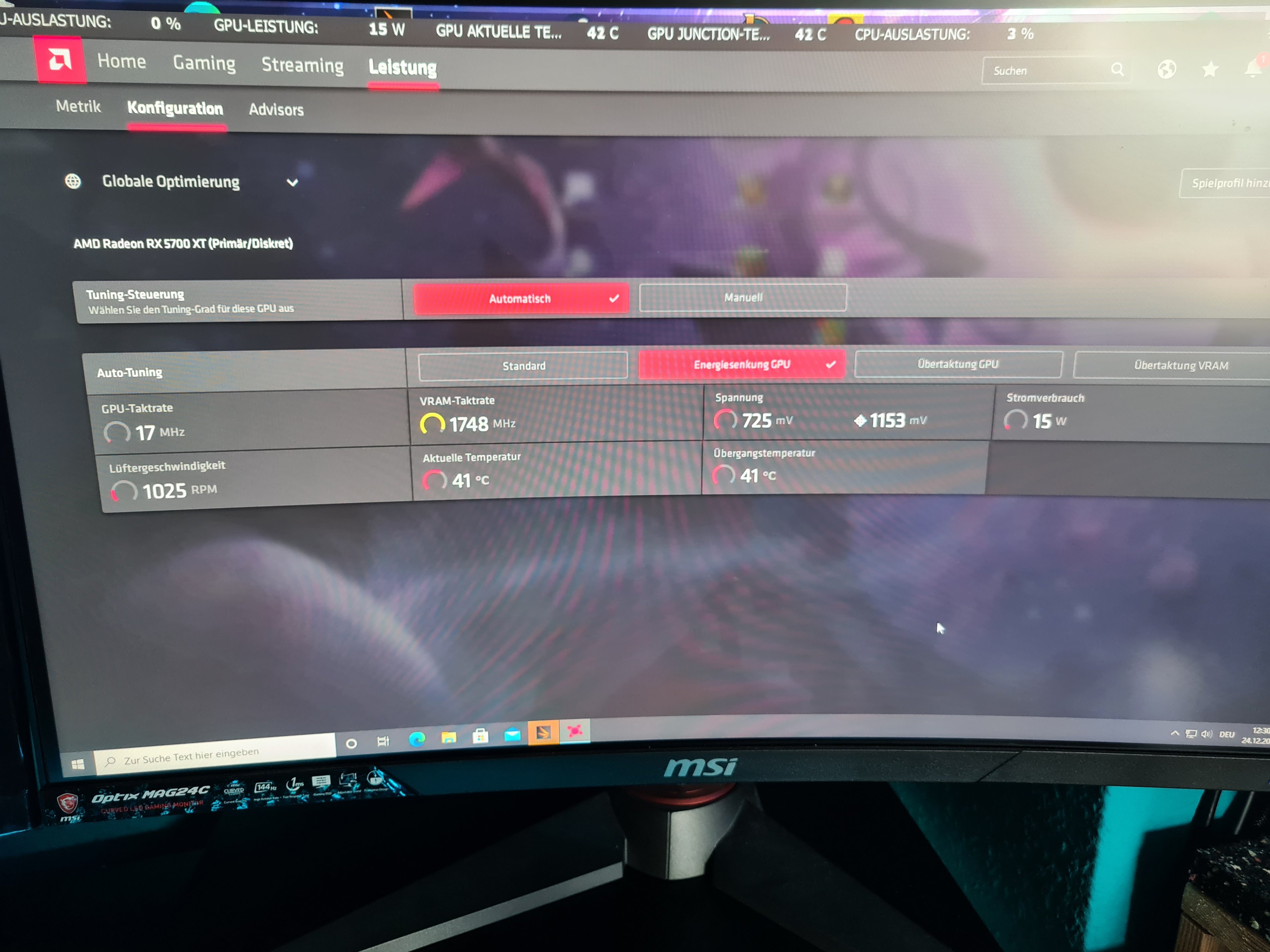 Abgesehen davon, dass sich einzig die RGB Beleuchtung des Rams nicht synchronisieren geschweige denn ansteuern lässt, obwohl die Riegel erkannt werden und die GPU bei Benchmarks und einigen Spielen eine GPU Junction-Temperatur von bis zu 100° erreicht, läuft ansonsten alles einwandfrei ohne Abstürze.