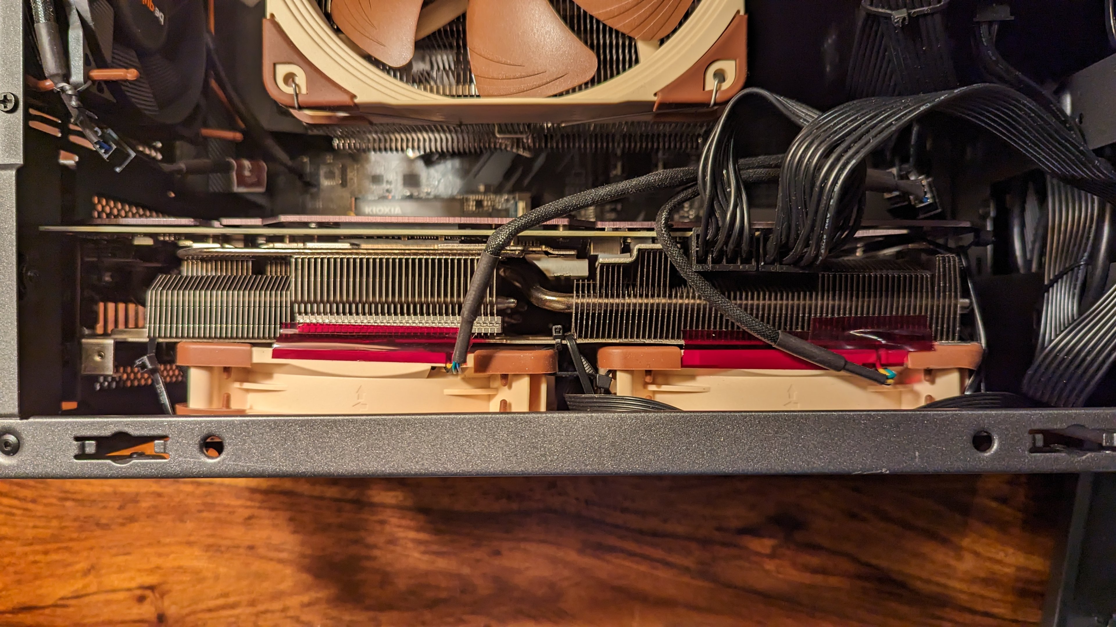 Der Kühler der TUF ist zwar insgesamt kleiner als bei der Noctua-Edition, allerdings groß genug für zwei 120mm Lüfter nebeneinander.