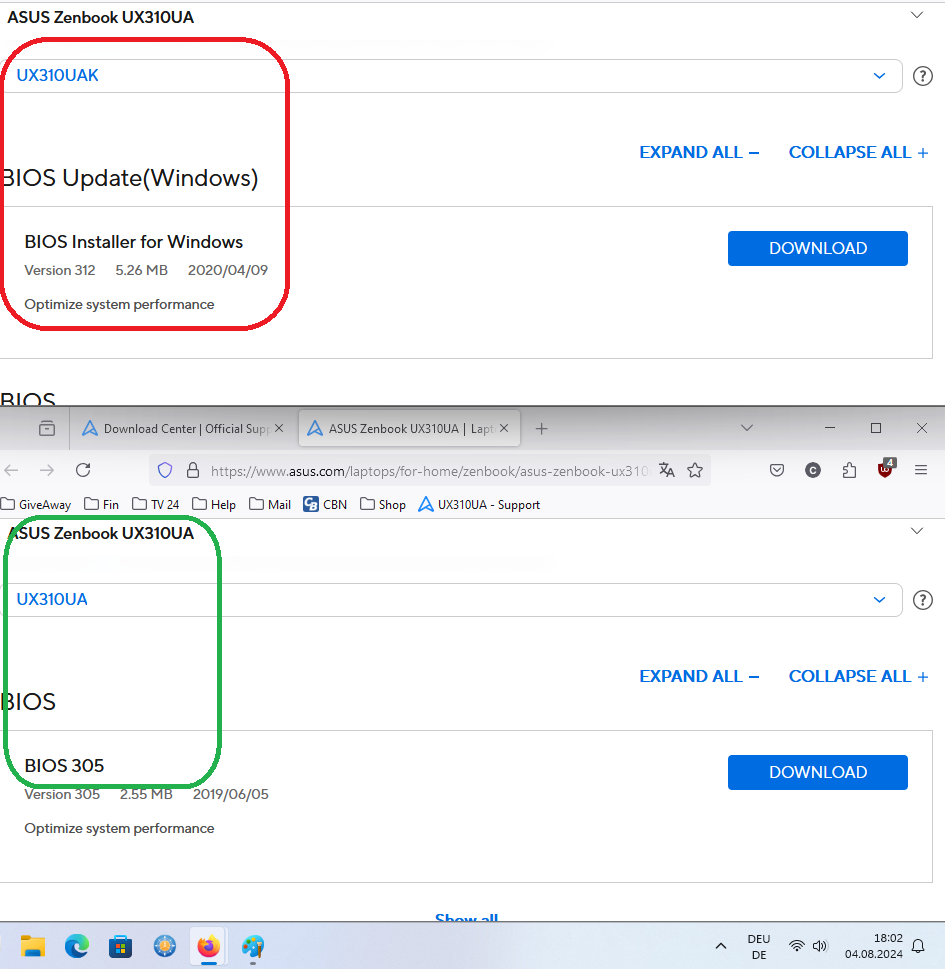 Da dürfte der Fehler stecken, Die Version 312 ist für das UX310 UAK