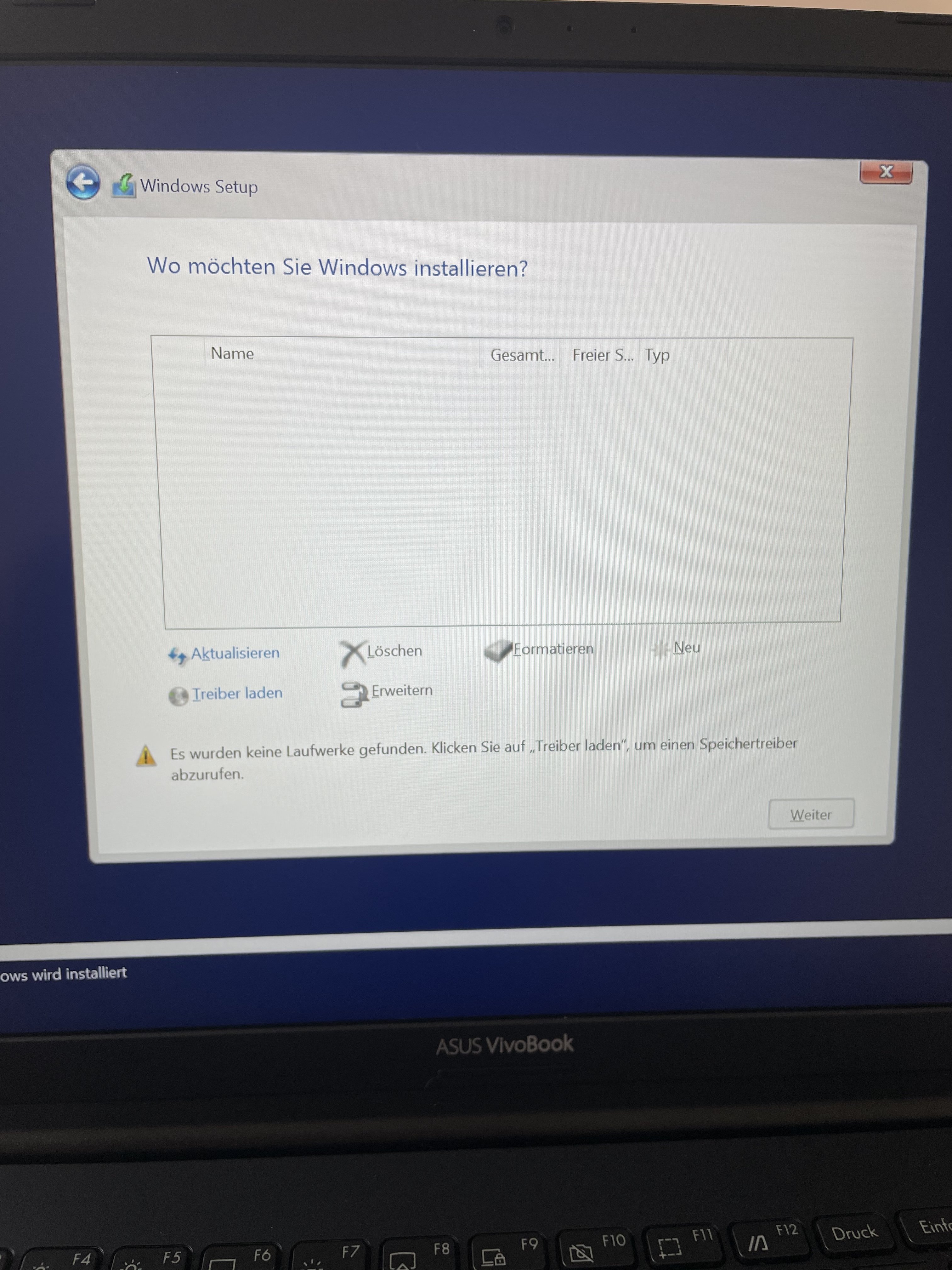 ich versuche seit gestern auf meinem neuen Asus ViVobook S15 Windows zu installieren. Leider wird mir beim Installieren vom USB Stick während des Windows Setups die interne SSD nicht angezeigt.