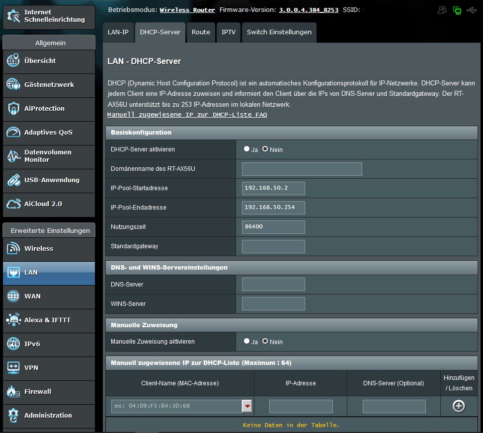 Wie gesagt, wenn ich alles so einstelle wie oben beschrieben klappt auch alles wie gewünscht. Nur das eben angezeigt wird, das kein Netzwerkkabel eingesteckt ist und die Serverfirmware manuell hochgeladen werden muss.