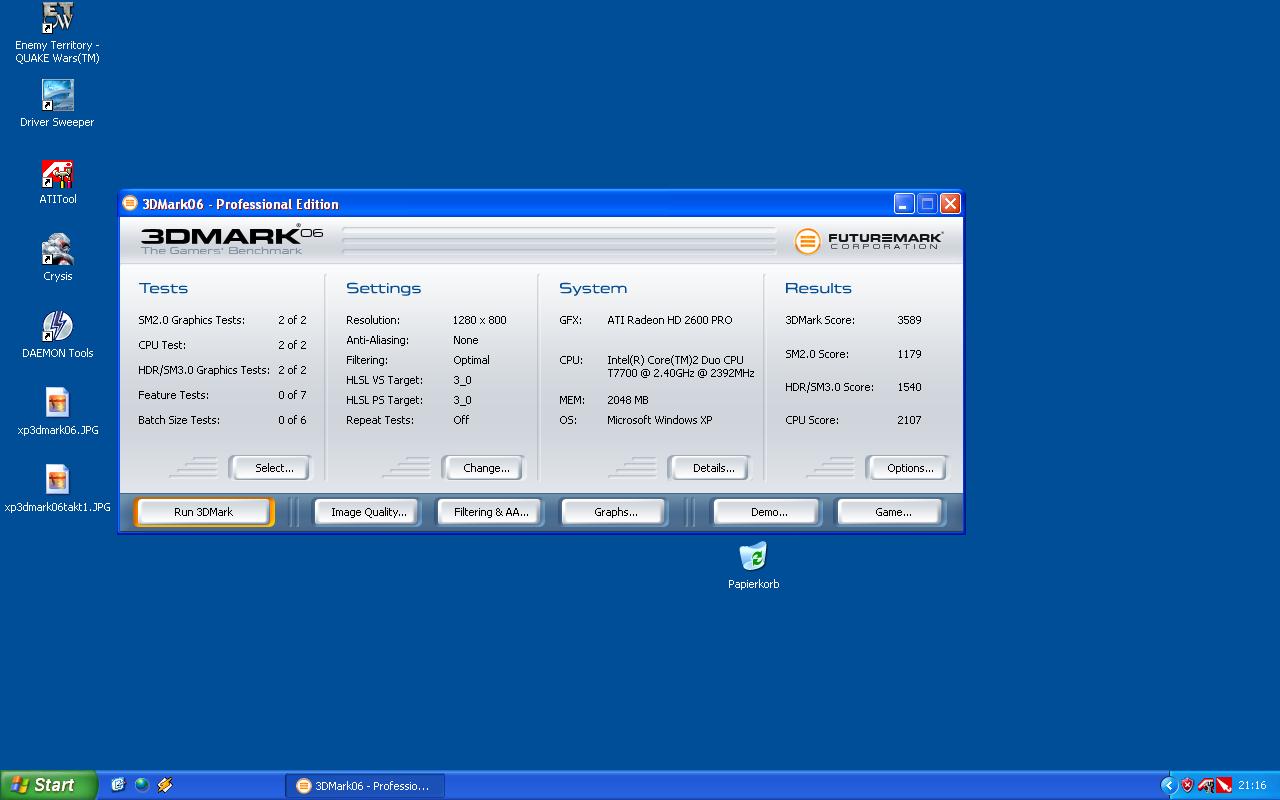 Die 'Stand-Alone' Version liess sich ohne Probleme installieren. Hab alles auf Leistung gestellt. Mit 3D-Mark06 erreiche ich 3339 Punkte.