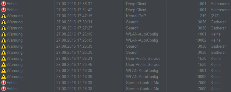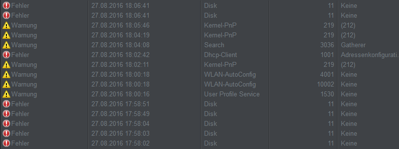 Ich habe einen blick in die Ereignisanzeige riskiert und habe ziemlich viele Ereignisse gefunden (knapp 17800), leider kann ich mit vielen Ereignissen nichts anfangen oder weis nicht wie ich diese beheben könnte (siehe angehängtes Bild)