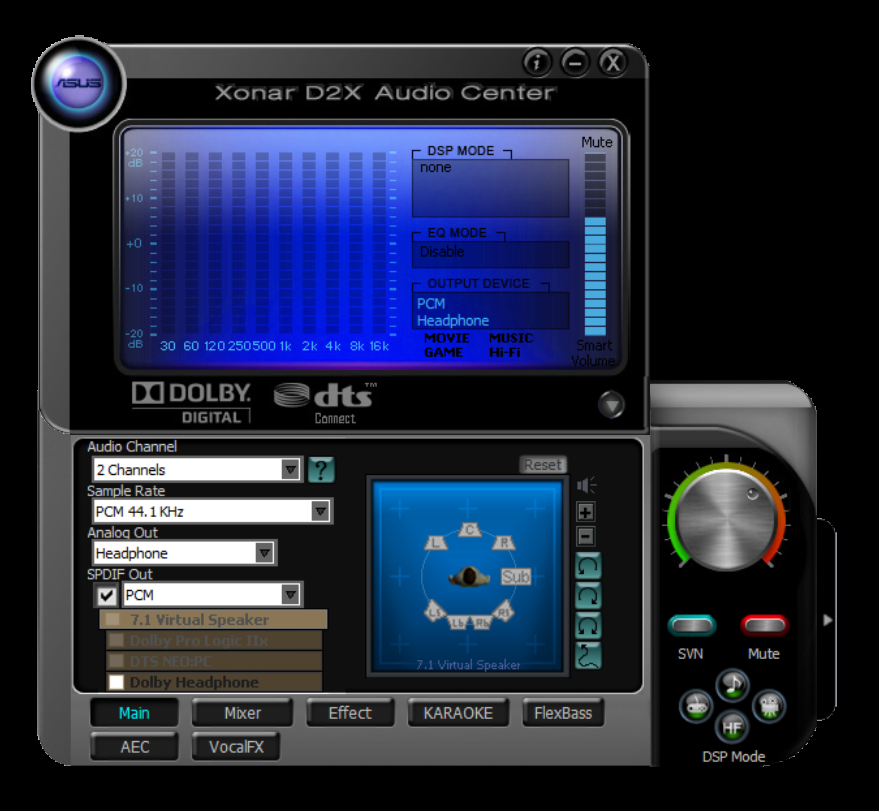 Im Xonar D2X Audio Center sind alle zusätzliche Effekte ausgeschaltet und eigentlich habe ich nur den digitalen SPDIF out aktiviert: