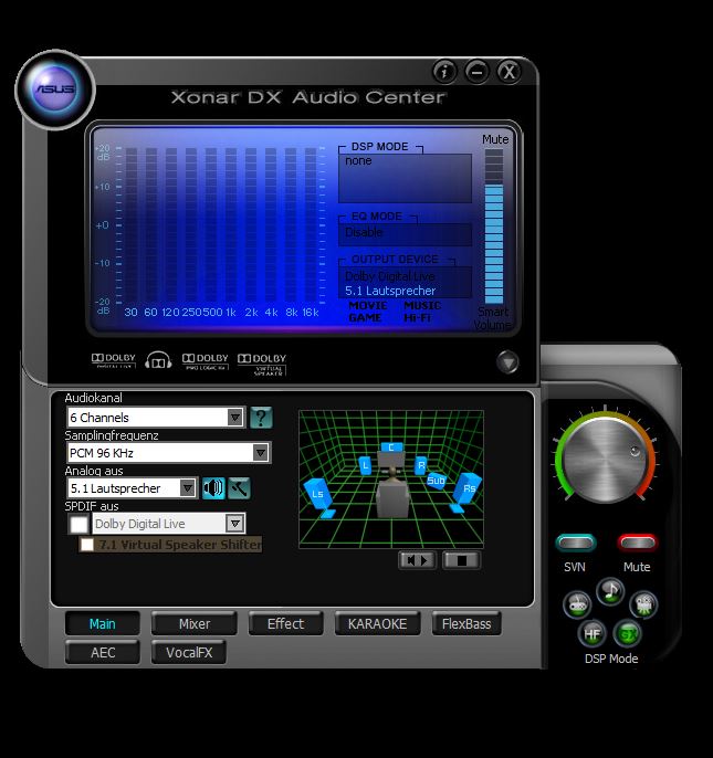 ich bin seit ein paar Stunden im Besitz einer Asus Xonar DGX - Soundkarte. Ich habe die Soundkarte eingebaut und meine Anlage auch angeschlossen. Treiber ist auch soweit installiert und ich habe schon richtig viel rumgestellt um da nen 5.1 Sound zu bekommen.