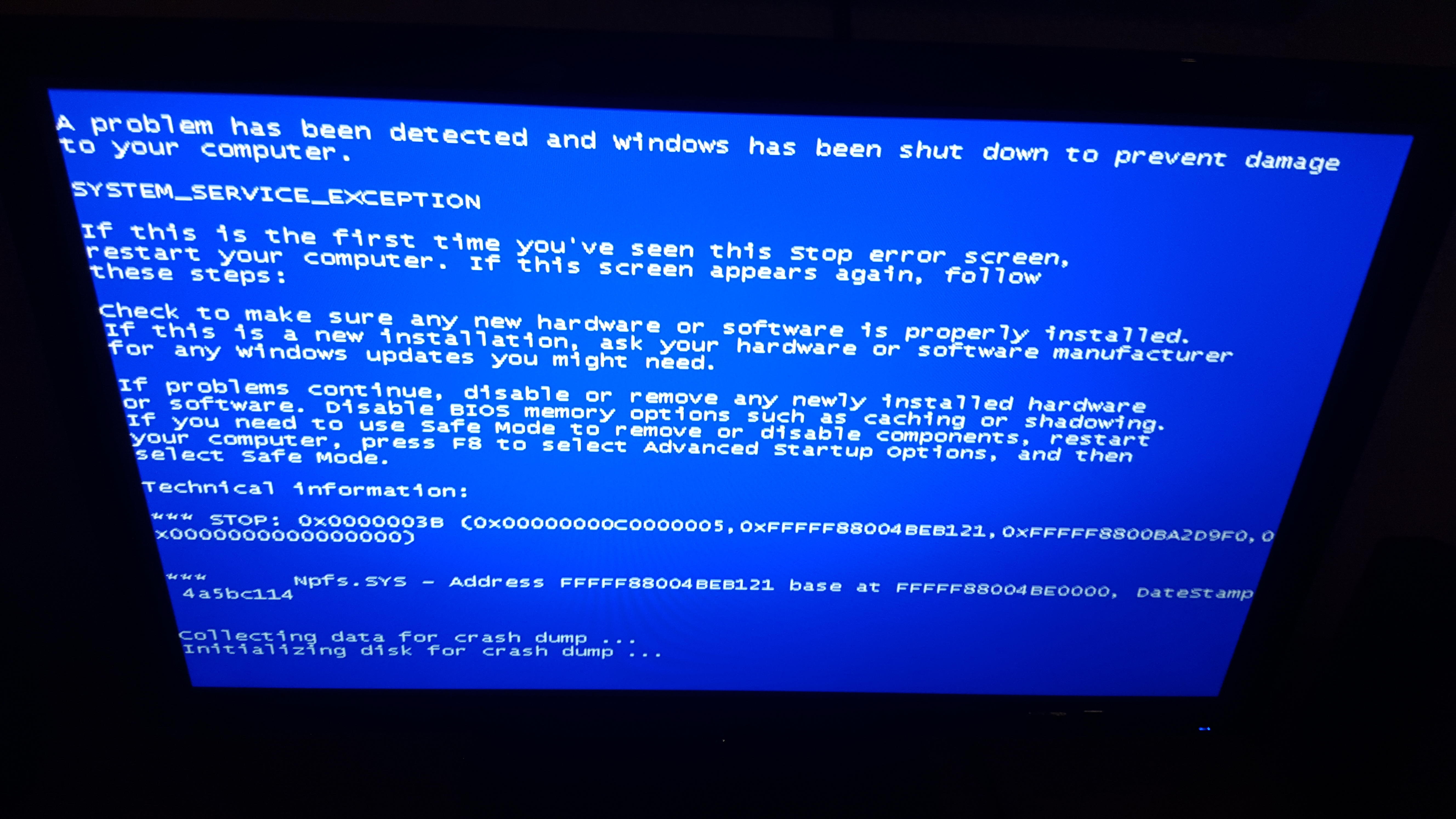 Warum erstellst du denn jetzt einen neuen Beitrag?Zu dem einem Bsod habe ich dir bereits einen Hotfix beschrieben.
