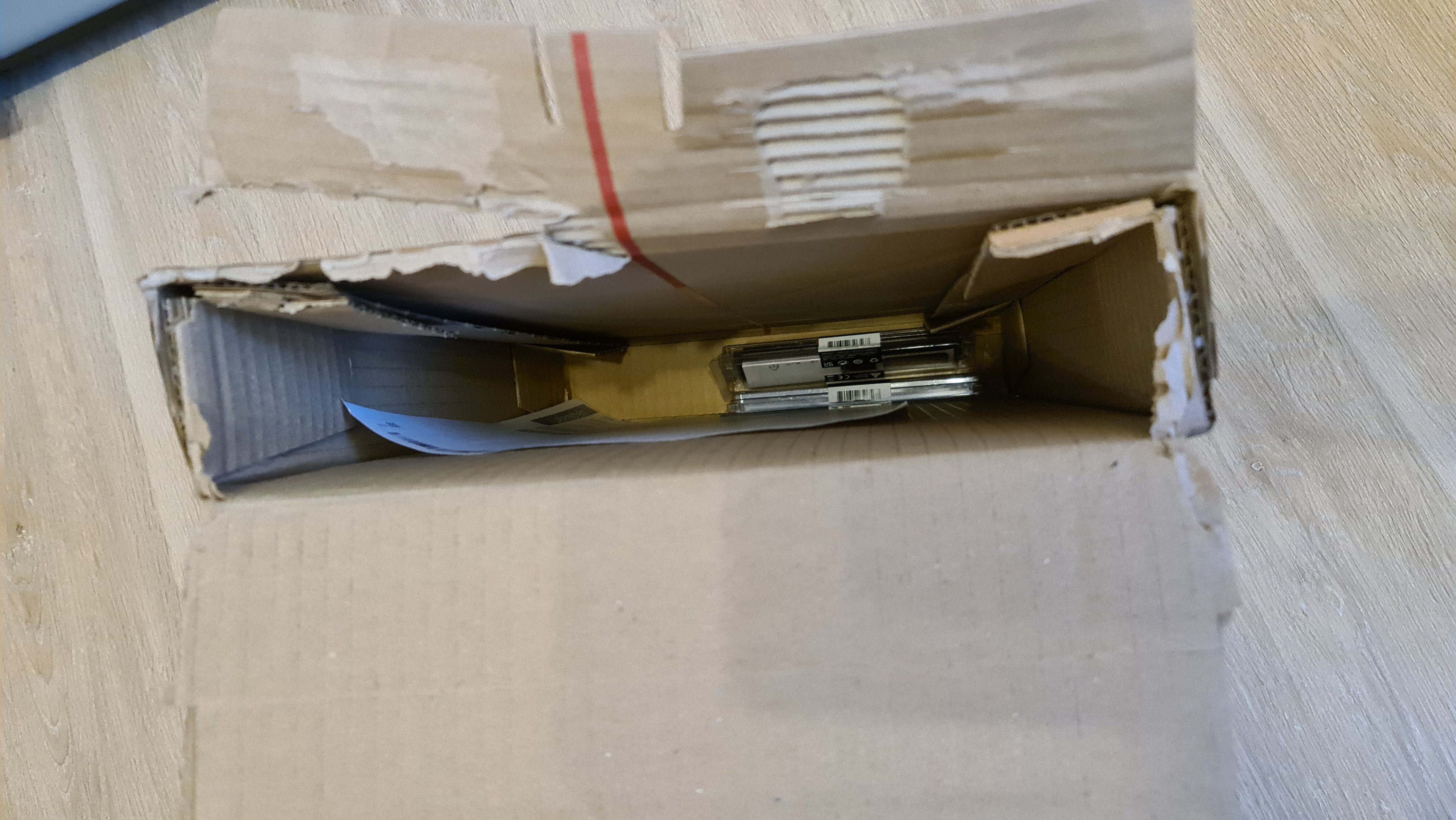 Das bescheuerte ist leider dass der Onlinehändler die Module einfach in einen riesen Karton ohne jegliche Polsterung geworfen hat, die sind da also wild rum geflogen.