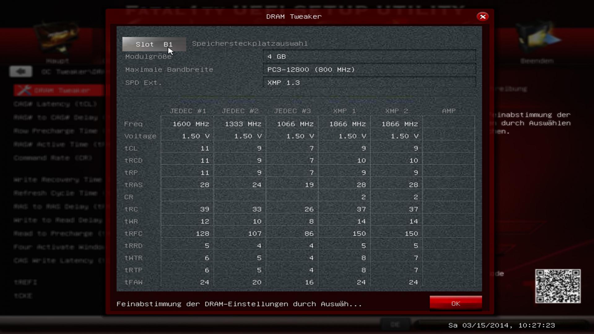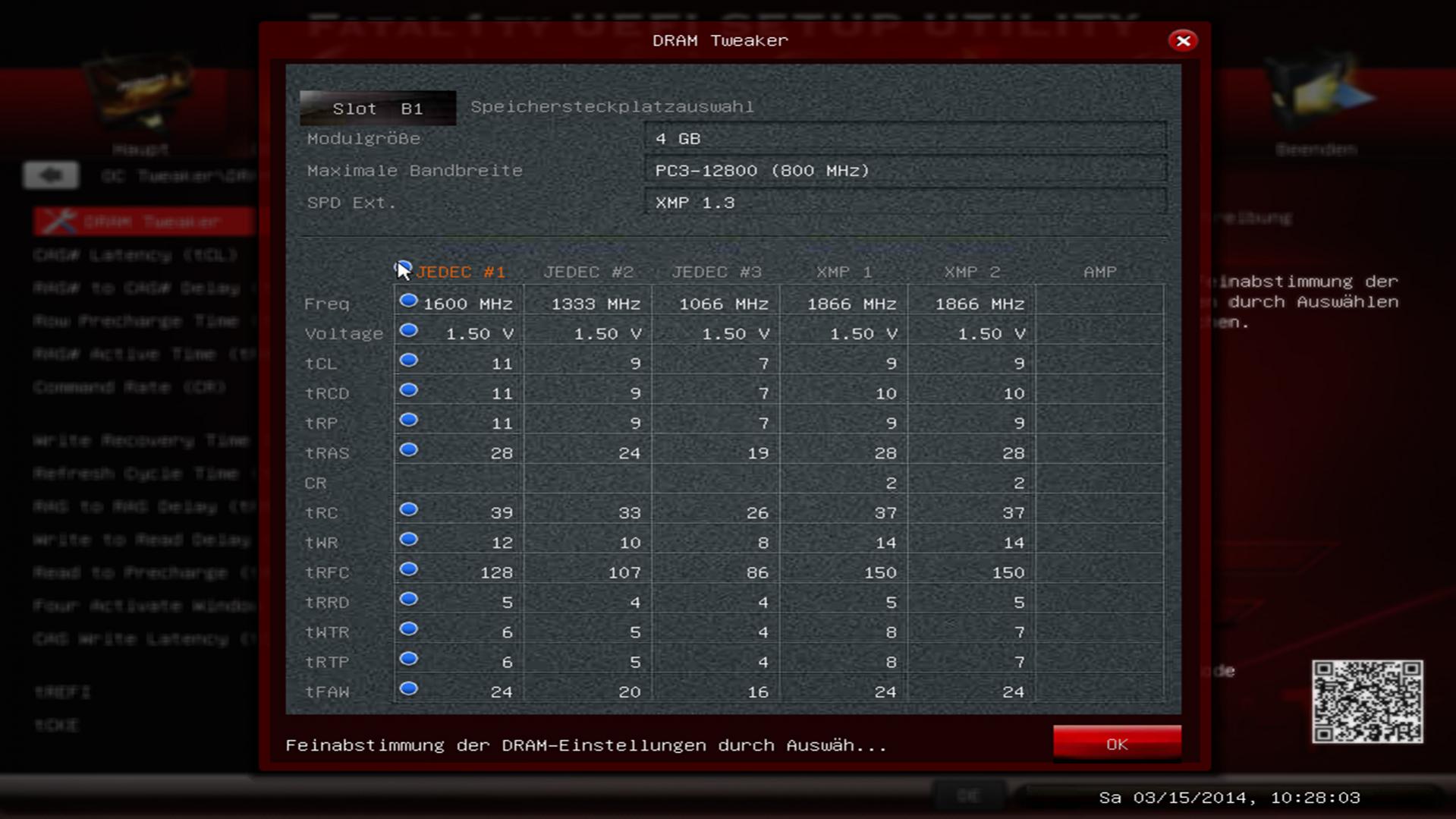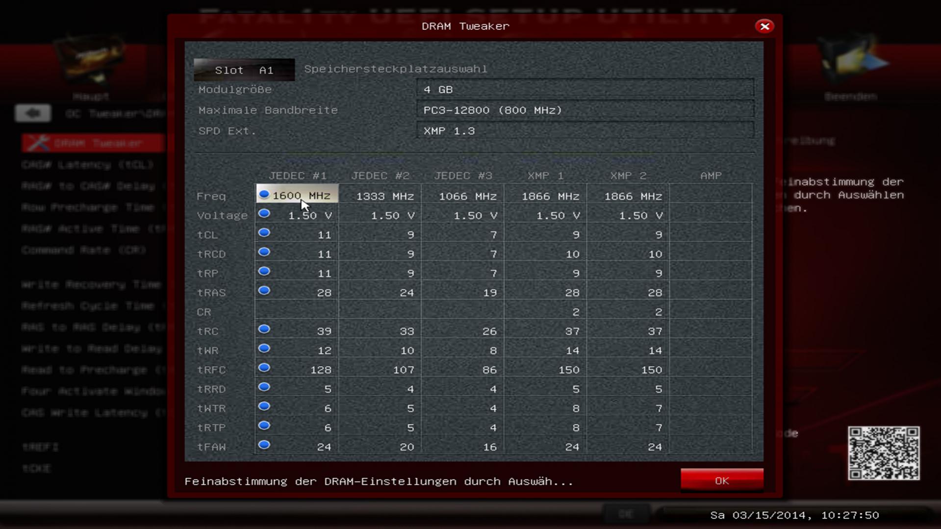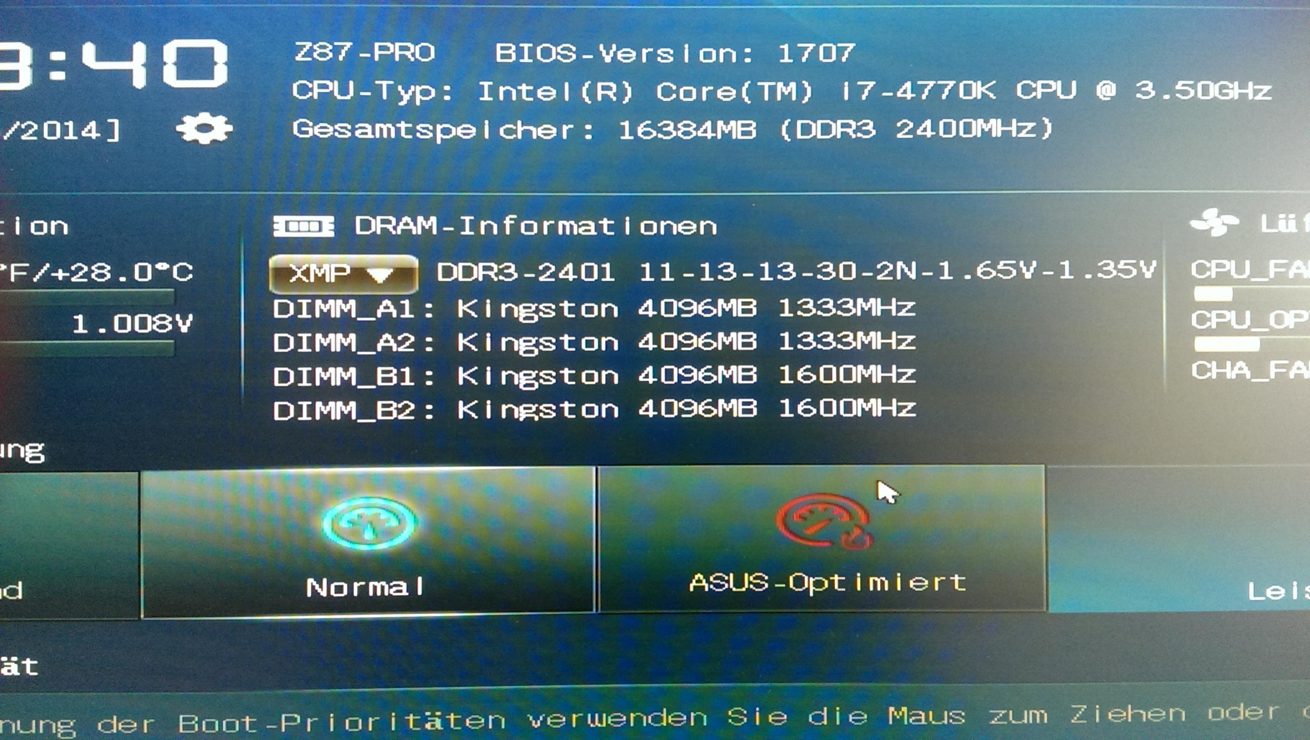 Da ich vom OC wenig bis keine Ahnung habe, habe ich im BIOS XMP Profil I ausgewählt.