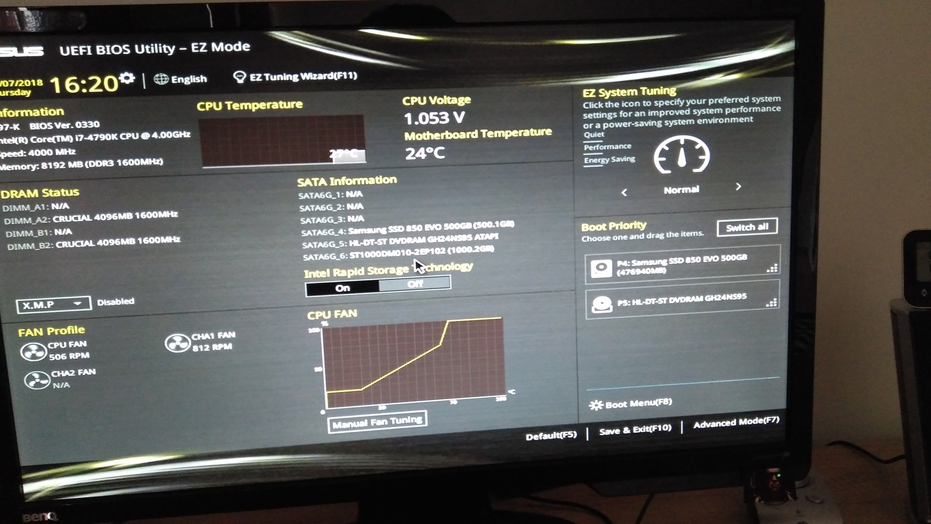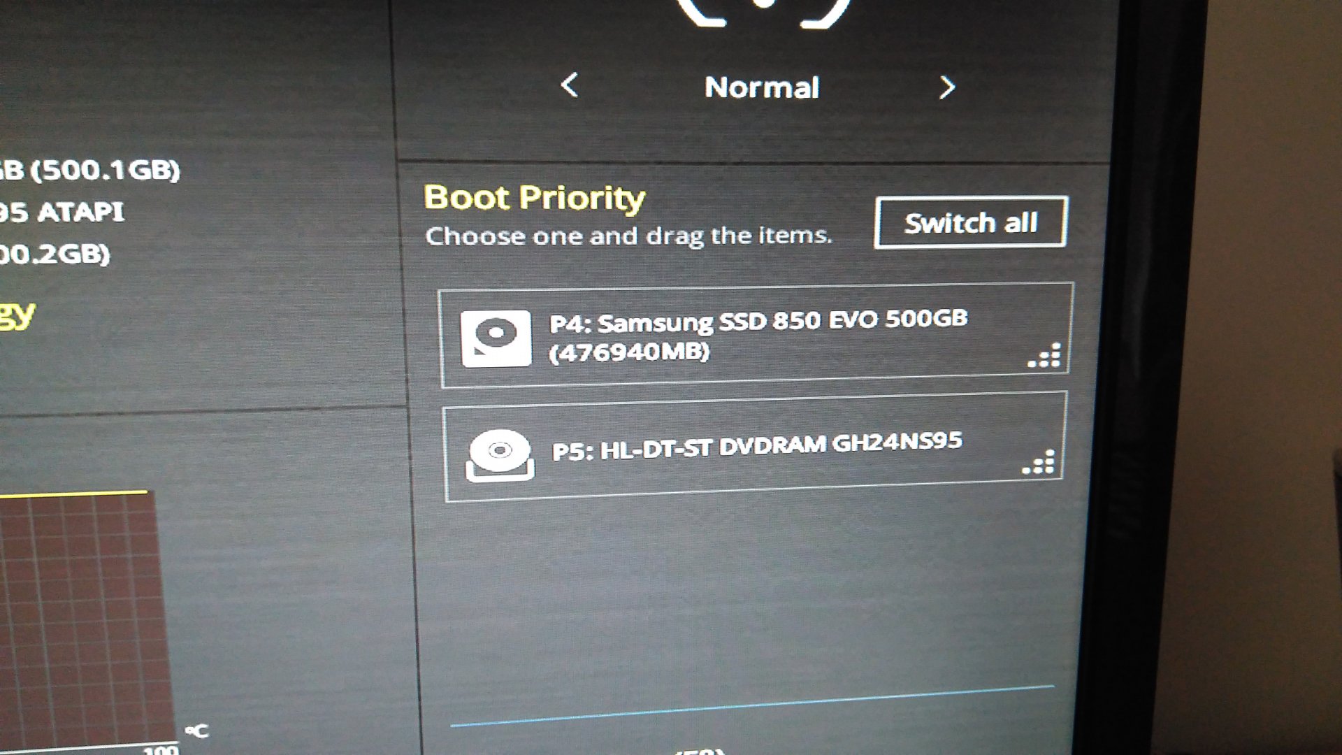 Wenn ich ins Bios gehe sieht es auch gut aus. Die Samsung SSD 850 ist auf erster Stelle in der Bootreihenfolge.