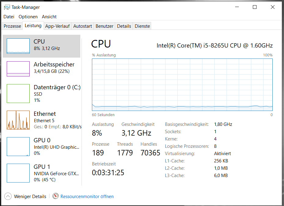 Die Akkukapazität habe ich bereits getestet (unter anderem mit BATExpert) und diese beträgt noch 88%. Alle von Windows angegebenen Updates habe ich auch installiert. Im Task Manager ist mir auch nichts aufgefallen. Das Virenprogramm (Avira Free) hat ebenfalls nichts gefunden.