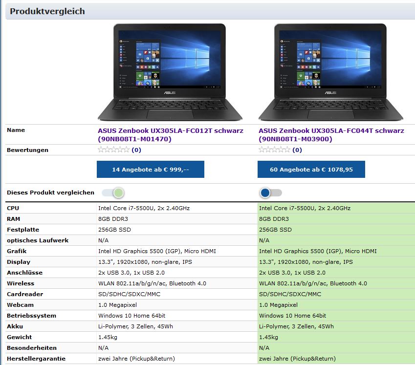 Favorit ist das Asus Zenbook UX305LA-FC012H nach Lektüre des Tests von Notebookcheck. Problem: Genau dieses Modell gibt es nicht mehr.