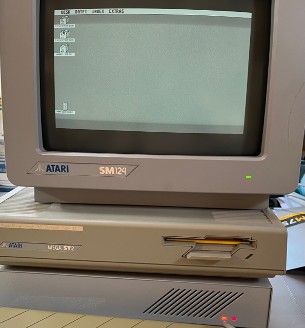 Mega ST2: Das Gerät ist heute, 22.07.2022, angelaufen und funktioniert (siehe Photo). Das gilt auch für Monitor, Maus und Tastatur. Offenbar funktioniert aber das Flopyy-Laufwerk nicht richtig, es wurden verschiedene Floppies nicht erkannt, obwohl ich sie in TOS anmelden konnte.