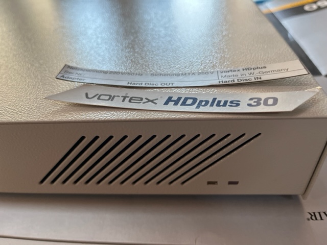 Harddisk vortex HDplus 30: Die HardDisk lief an und die Daten waren gelegentlich lesbar (Verzeichnisse, Dokumente). Allerdings gab es auch mehrere Fehlermeldungen. Ein Löschen des Disk konnte nicht (mehr) durchgeführt werden. Ehrlicherweise muss deshalb der Zustand der HD als defekt bezeichnet werden. (Das muss aber offenbar nicht zwingend das Ende sein: https://www.atari-forum.com/viewtopic.php?t=22756 )