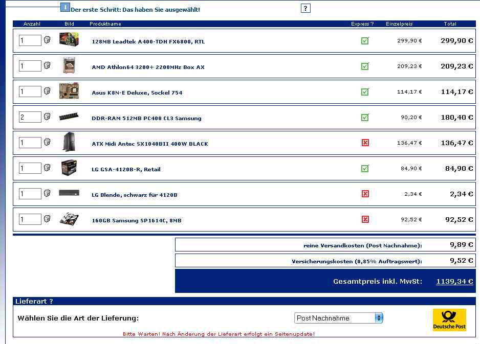 und nen DVD-Laufwerk, weil ich das Aopen vergessen hab in Warenkorb zu tun, man bin ich doof