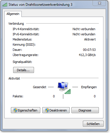 Doch nach einer Windows 7 Neuinstallation findet Windows Update zwar den Treiber noch und installiert ihn auch, aber wenn ich auf die Internetverbindungen gehen möchte und ein WLAN-Netzwerk suchen möchte, kann ich keins suchen, denn das rote X ist da.