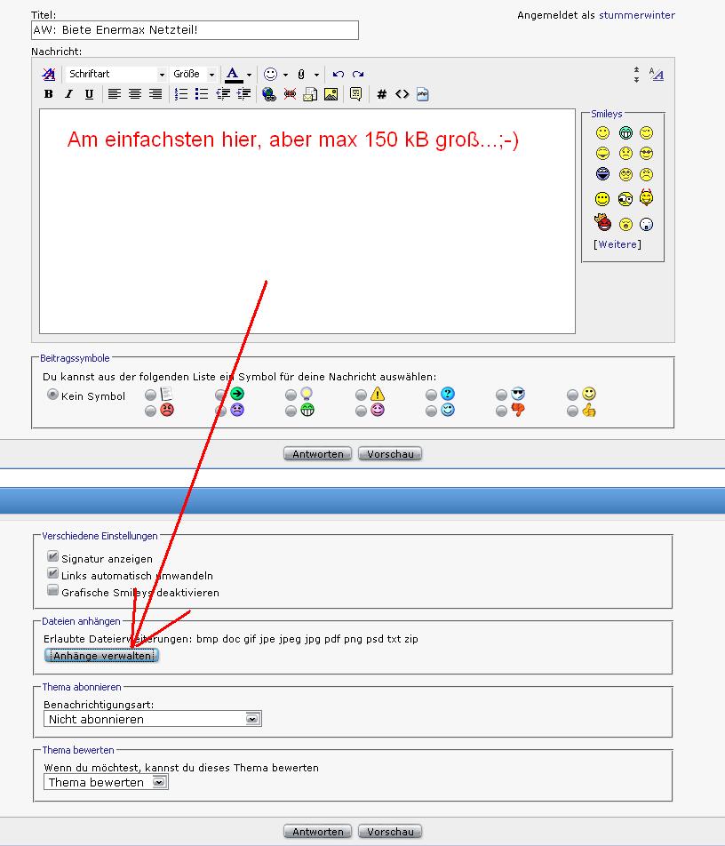 Sorry war mein erster Beitrag aber habs jetzt kapiert ,beim nächsten Beitrag werd ichs richtig machen.