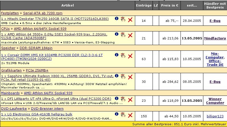 CPU: 3200+ Venice -> hat mehr Potential und ist günstiger