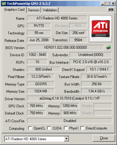 Update 1: Die Diskussion ueber die echte oder unechte 4870 laesst sich ganz einfach herausfinden: