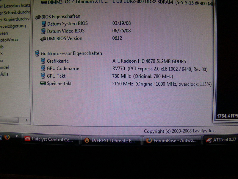 Also ich habe unter dem Catalyst das "Overclocking Tool" genommen und die max Taktraten ermitteln lassen. Leider bin ich z.Zt. im Büro. Kann die Werte aber heute abend gegen 18:30 mal posten.