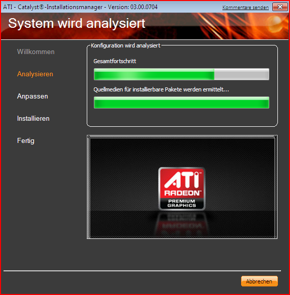 Dann hab ich versucht den etwas drüber zu installieren, und er bleibt auch an der Stelle hängen. Das gleiche hab' ich mit einem Vista-Treiber gemacht. Wieder an der Stelle festgefahren.