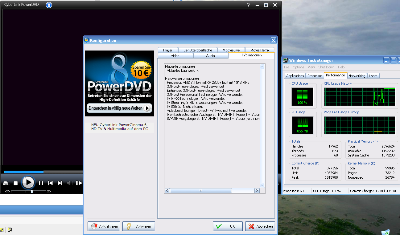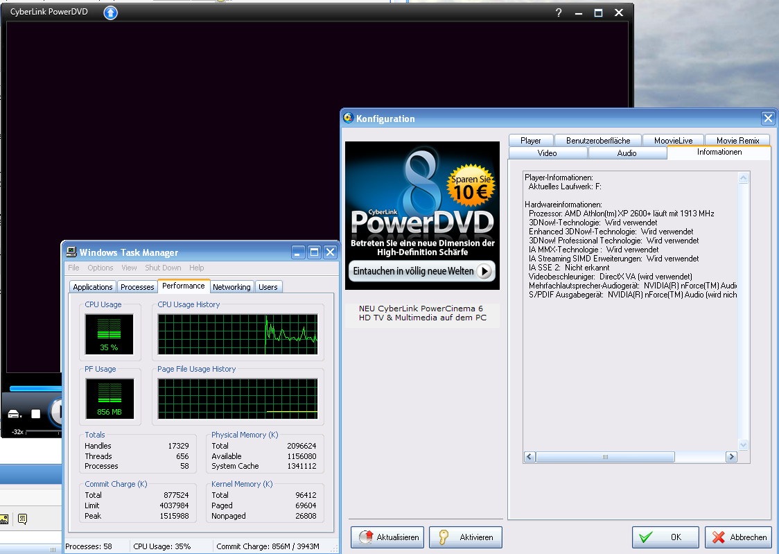 bin an eine ATI HD 3850 AGP rangekommen und wollte nun mal mit voller Vorfreude die, zumindest therotisch, Hardware Decoder Funktionen ausprobieren, doch das scheint nicht so wirklich klappen zu wollen. Habe Windows MCE 2005 SP3 neu installiert und die 8.12 AGP Hotfix Treiber installiert. Karte läuft wunderbar, sowohl 2D als auch 3D
