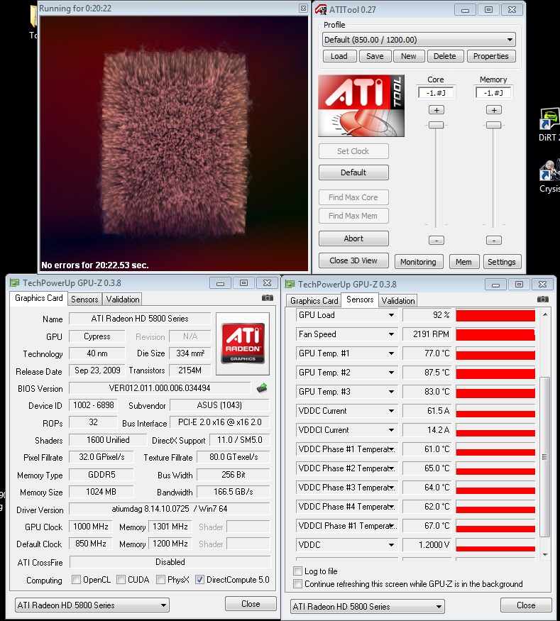 Bei mir bringt Furmark früher Graphikfehler bei zu niedriger Spannung als ATI Tool das laüft mi 1,2 Volt bei 1000 Mhz ne halbe stunde ohne Fehler länger hab ichs noch nich laufen lassen.