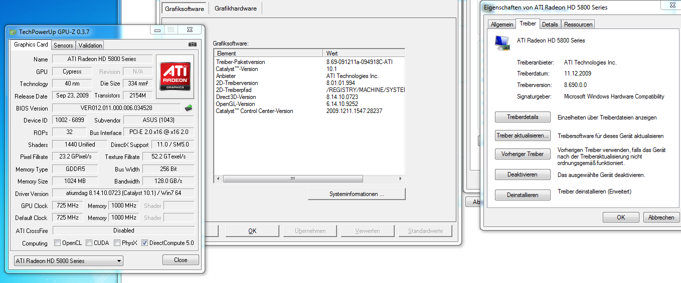 ich hab mir den neuen Catalyst Treiber 10.1 runtergeladen. Hab vorher den alten deinstalliert neugestartet und den neuen installiert. Nochmal neugestartet dann kam ein Fehler, dass kein Treiber installiert wäre. Hab dann im Geräte Manager geguckt und da stand Standard VGA bla. Hab ich da entfernt, neugestartet und Windows hat automatisch wieder mal irgendein Treiber mit dem Updater installiert was ich nicht will. Naja hab trotzdem den neuen nochmal installiert. Diesmal ging alles nur hab ich das gefühl, dass nicht der neueste Treiber drauf ist, sondern der kack von Microsoft. Im Gerätemanager steht: