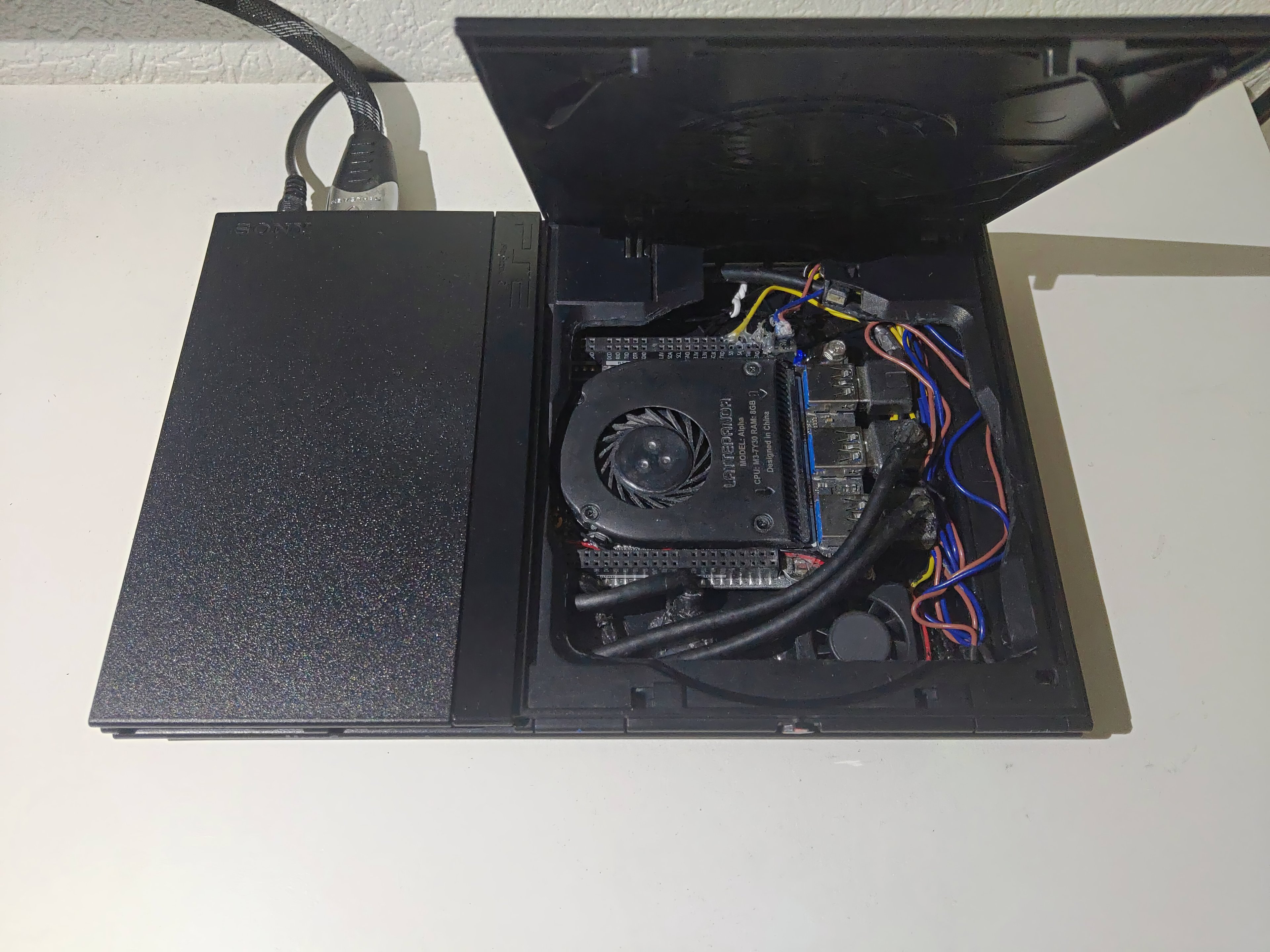 Aufgrund des geringen nutzbaren Innenraums der PS2 Slim sind Formfaktoren wie Mini-ITX oder sogar das Innenleben gängiger Mini-PCs schon deutlich zu groß und dick.