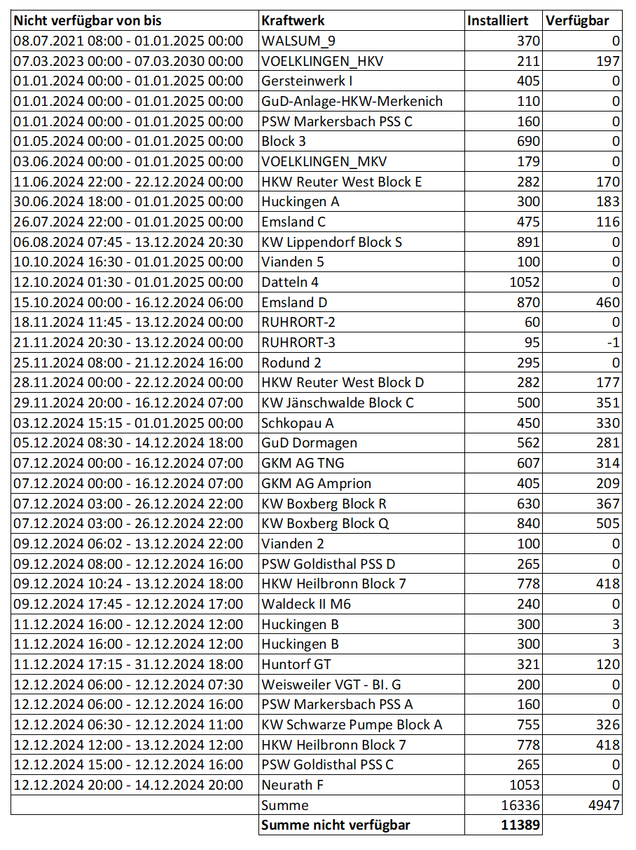 An den beiden Dunkelflaute-Tagen 11. und 12. Dezember „hat RWE alle technisch verfügbaren Kraftwerke wie gewohnt am Markt angeboten und aufgrund der hohen Preise dann auch voll am Netz gehabt“.