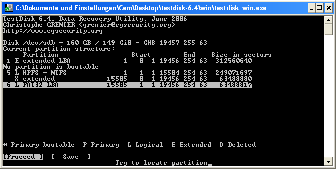 Daher sollte Testdisk auf einer Partition mit genügend Speicherplatz ausgeführt werden.