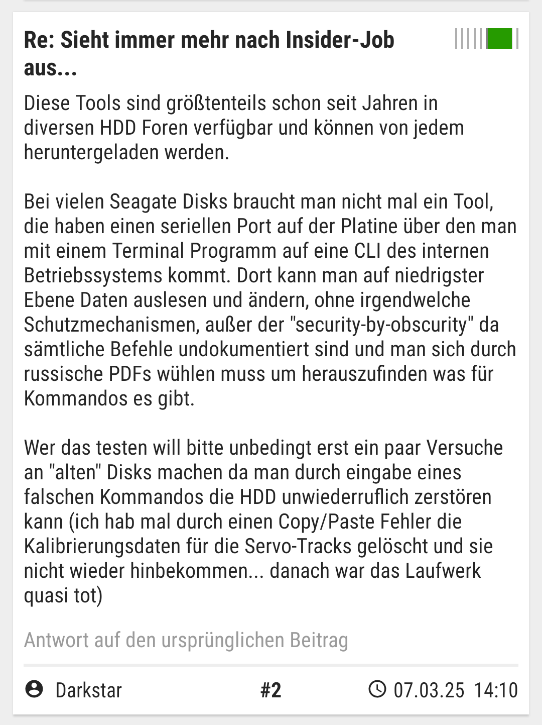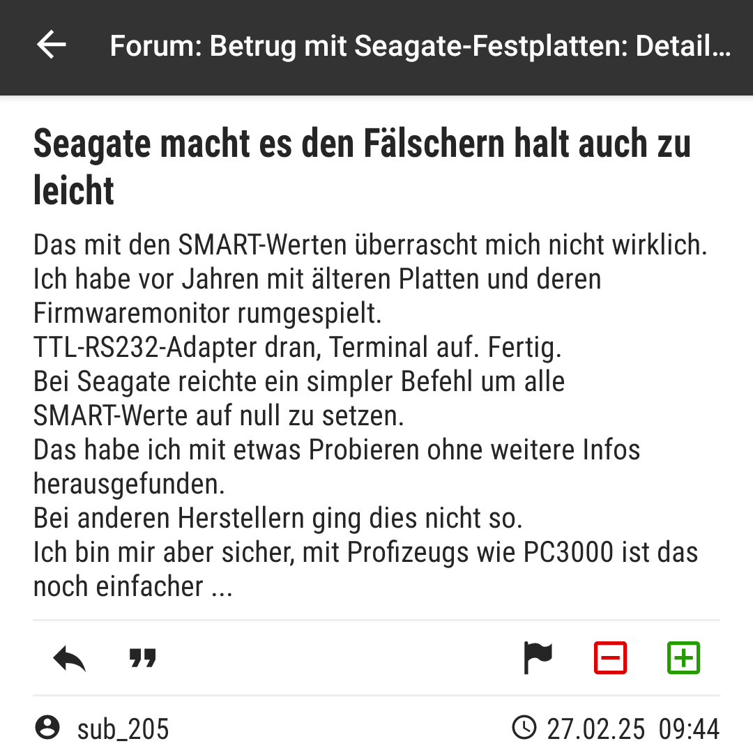 b) setzt Seagate die FARM-Werte bei ihren Recertified aka gebrauchten Platten ebenfalls auf Null.