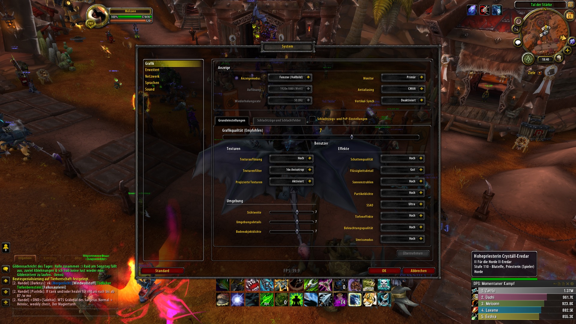Im Raid geht es wunderbar, aber in den Städten wie auf dem Screenshot zu sehen OG, bei den Settings, nur 40 Fps?