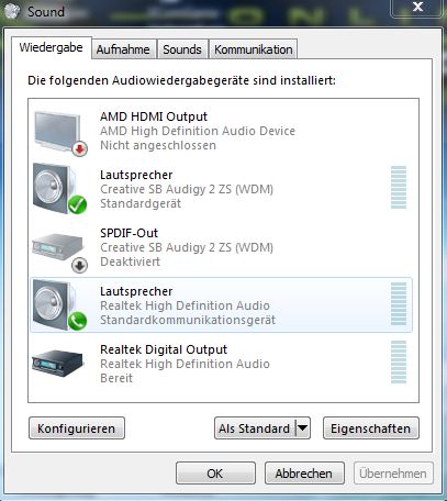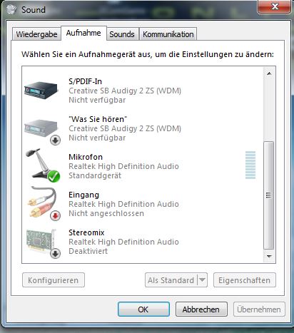 das mainboard is neu und hat einen hd-audio anschluss (realtek hd audio alc892), das gehäuse wie ich feststellte aber nur einen alten audio anschluss fürs frontpanel (von der steckerbelegung siehts nach ac97 aus - nur andere farben der isolierten kabel, dürfte zeitlich aber hinkommen, weil usb2.0 und firewire ebenfalls am panel sind) und registriert kein einstöpseln und schlägt nicht aus - und selbst wenn ich durch wildes ausprobieren irgendwann einen ausschlag bemerke in der liste der wiedergabegeräte, kommt nichts aus den kopfhörern. also egal was ich als standardgerät oder standardkommunikationsgerät auswähle.