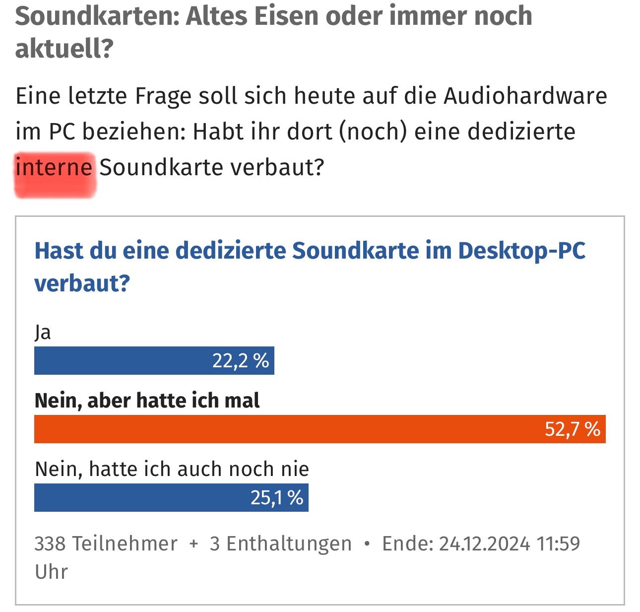 Seit Microsoft das CMSS-3D von Creative zunichte gemacht hat, habe ich keine dedizierte Soundkarte mehr in Verwendung.