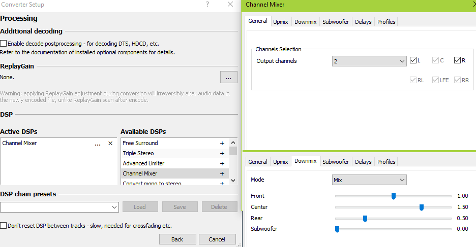 Ich mache mir die Stereoversion jetzt mit foobar 2000 und einem plugin. Gibts halt nur als 32bit, aber funktioniert ganz gut.
