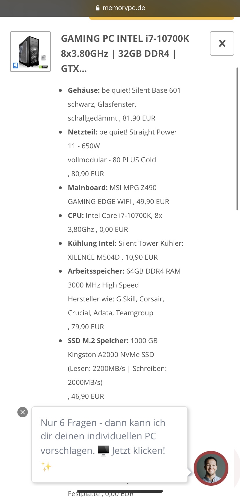 Ich habe mir bei memorypc.de (ich weiß nicht wie seriös die Seite ist) zwei PC’s Konfiguriert, leider weiß ich nicht ob die Komponenten so Sinn machen und überhaupt miteinander kompatibel sind. (Siehe Anhang).