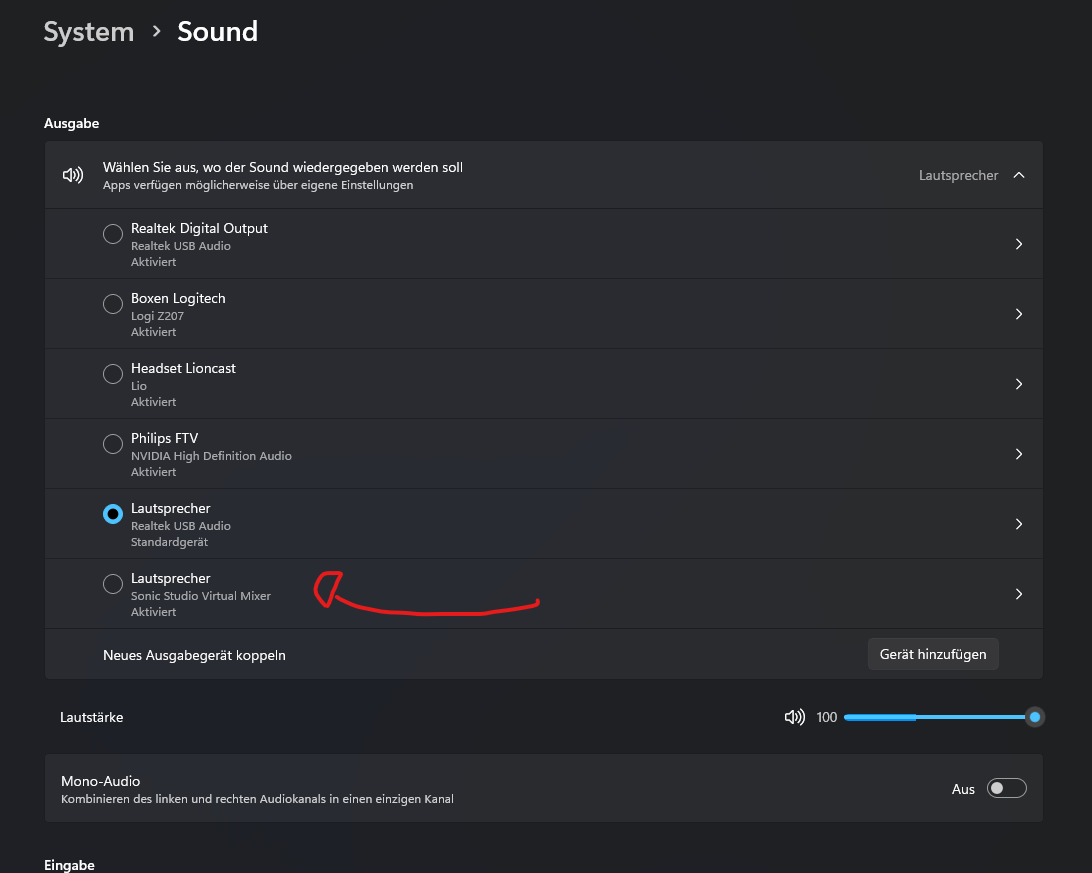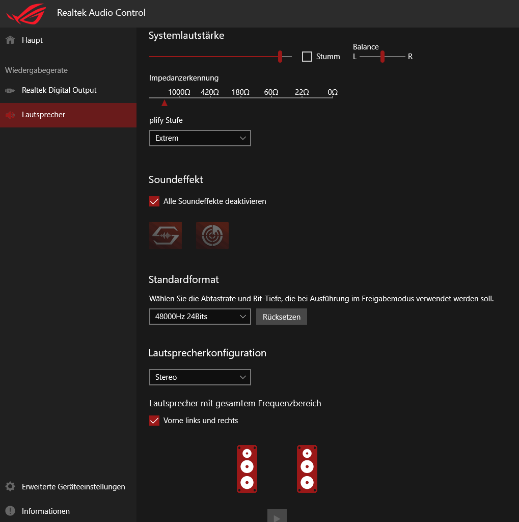 Ich habe diversen Anleitungen gefolgt und auch die Treiber von der Asus-Website neu installiert. Jedoch kommen da dann auch Sonic Studio und so weiter mit runter. Ich glaube, dass sich da irgendetwas gegenseitig überschneidet und ich dadurch keinen Output bekomme. Neuste Bios-Version ist auch installiert.