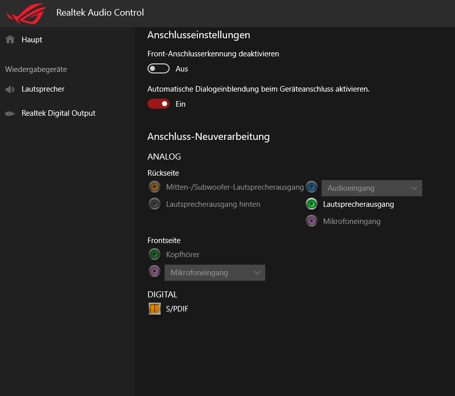 Ich habe ein Problem mit meinen Audio-Buchsen an dem genannten Mainboard, welches ich auch durch andere Threads nicht beheben konnte. Ich habe ein USB-Headset, das funktioniert einwandfrei. Jedoch bekomme ich keinen Ton über meine Lautsprecher, welche ich per Line-Out angeschlossen habe. Ich bin auch etwas verwirrt, da mir in den Einstellungen zum einen ein Lautsprecher (Realtec USB Audio) und eine Realtec Digital Output (Realtec USB Audio) angezeigt wird. An den Boxen liegt es nicht, das habe ich überprüft. Im Moment habe ich diese per Bluetooth verbunden, jedoch hätte ich gerne eine Kabelverbindung.