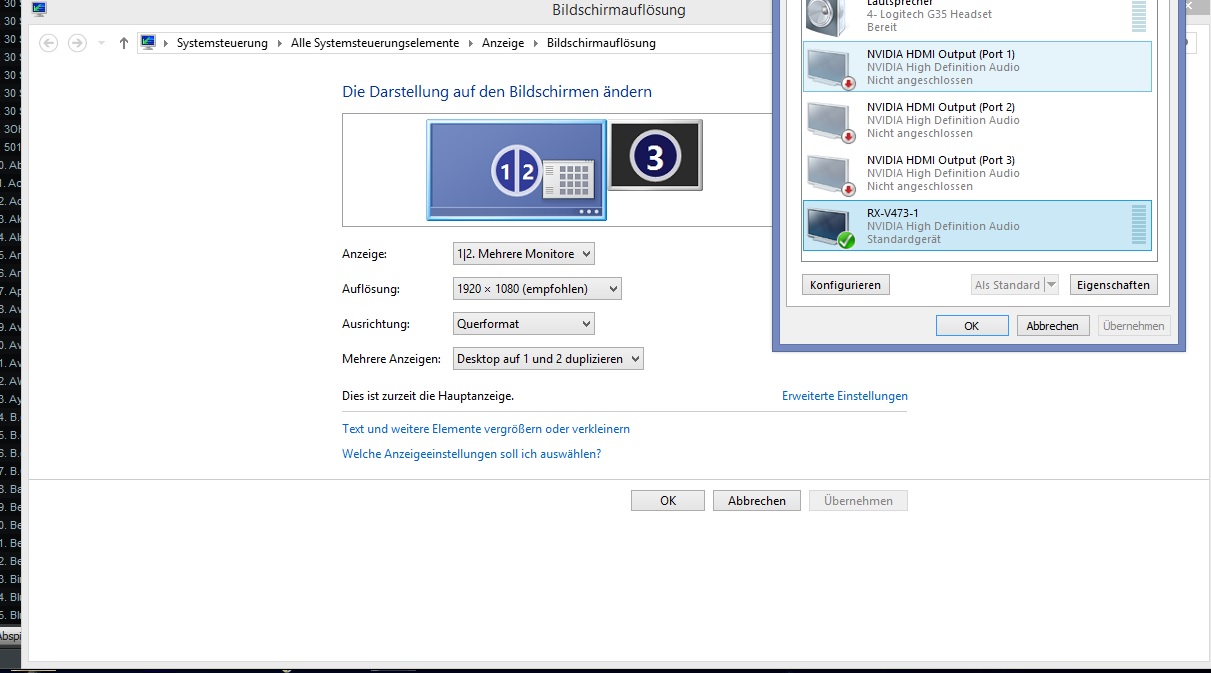 Ich habe an meinem Rechner zwei Monitore über DVI und den Fernseher bzw. eigentlich den AV-Receiver über HDMI angeschlossen. Wenn ich unter Windows spiele, gibt es eigentlich zwei Settings, die ich nutze: