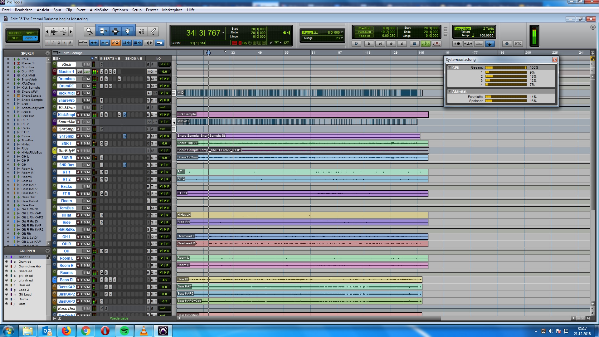 Zur Zeit wird aber überwiegend in Pro Tools 2018 gearbeitet. Hauptanwenung ist da Drum editing und das aufnehmen von Gitarre und Bass. Plugins werden sehr viele von Waves (V9 und V10 Versionen), FabFilter, Soundtoys, JST und Slate genutzt. VST Instrumente werden nur wenige genutzt. Ab und an ein paar Pads und sonst überwiegen Drum Sampler (Trigger2, Superior Drummer 3).